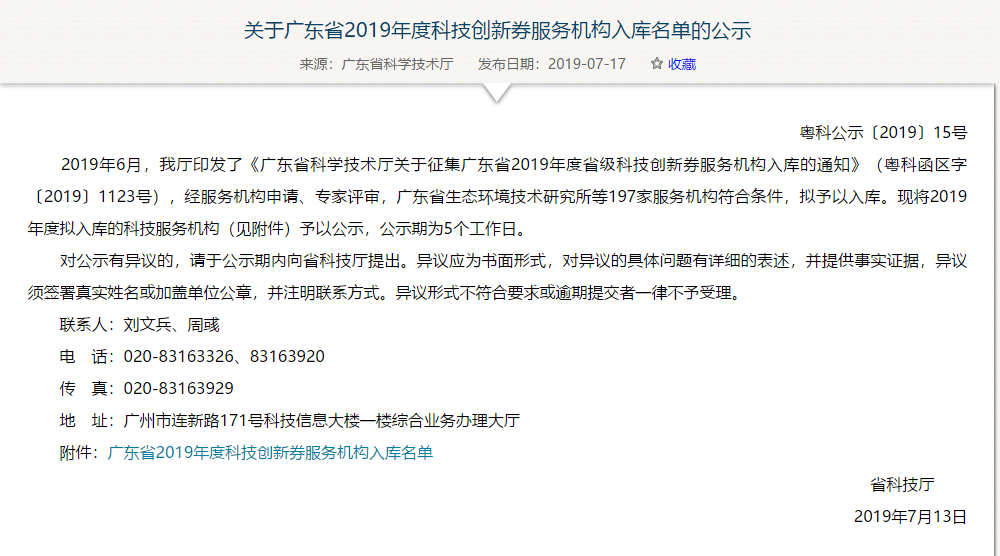 廣東省2019年度197家科技創新服務券服務機構入庫名單下載: